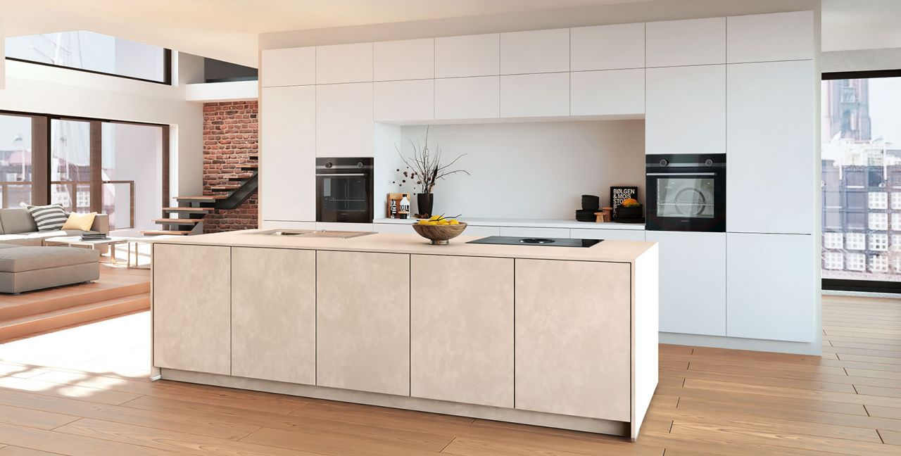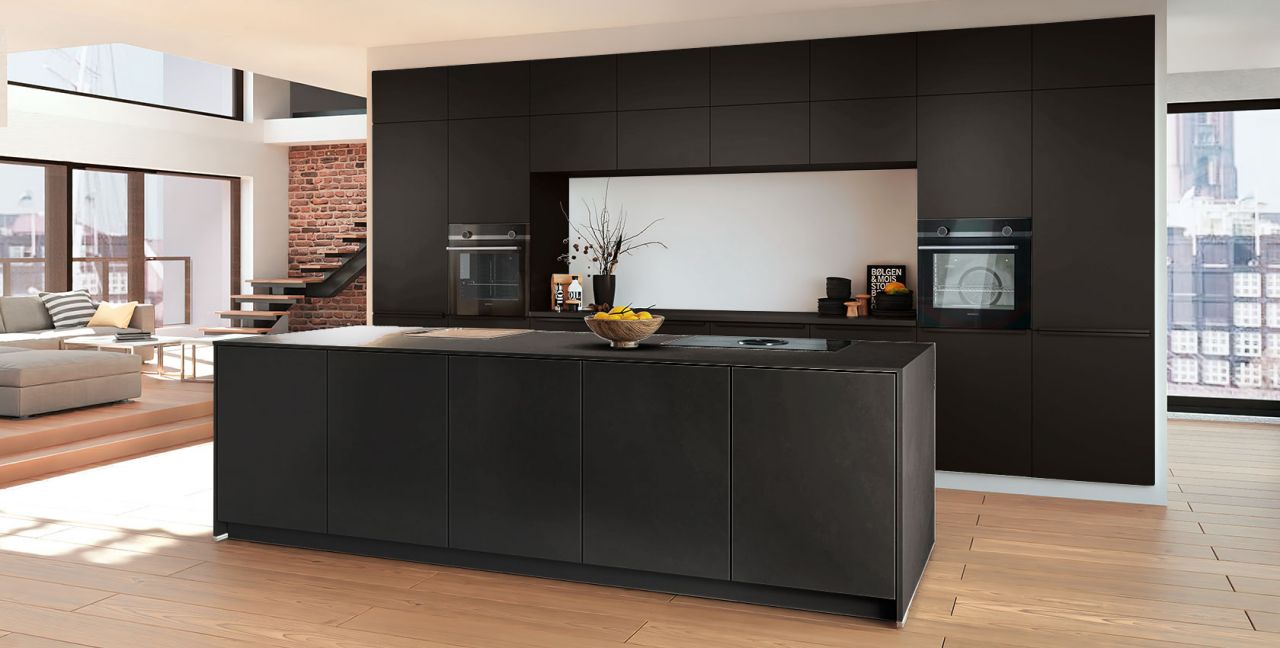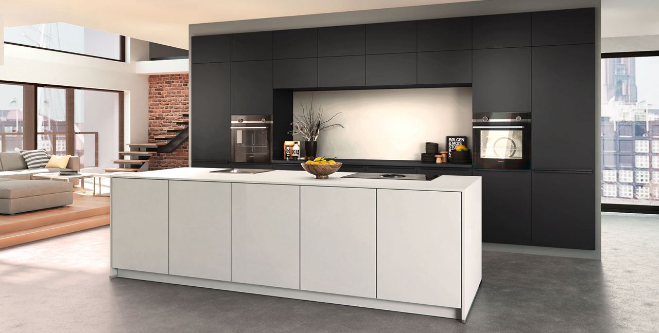 Inklusive 2x Einbaubackofen Edelstahl Siemens HB510ABR1 Energieeffizienzklasse A, Glaskeramik Kochfeld mit Induktion und Kochfeldabzug (Umluft) Bora GP4U, Kühlschrank Laurus LKG88E Energieeffizienzklasse E, Einbauspüle Edelstahl Rodi NewManaus, Wandschränken mit Klappe, XL-Schränken.